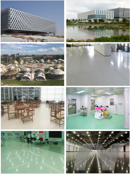 無機(jī)自流平地面,彩色磨石地坪,食品車間地坪、牲畜養(yǎng)殖地坪、垃圾轉(zhuǎn)運(yùn)站地坪(耐有機(jī)酸侵蝕)。